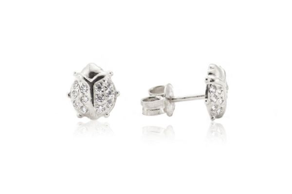 Fehér arany baba és gyermek fülbevaló stekkeres katica sok köves