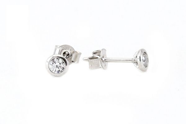 Fehér arany button fülbevaló fehér kővel 4mm
