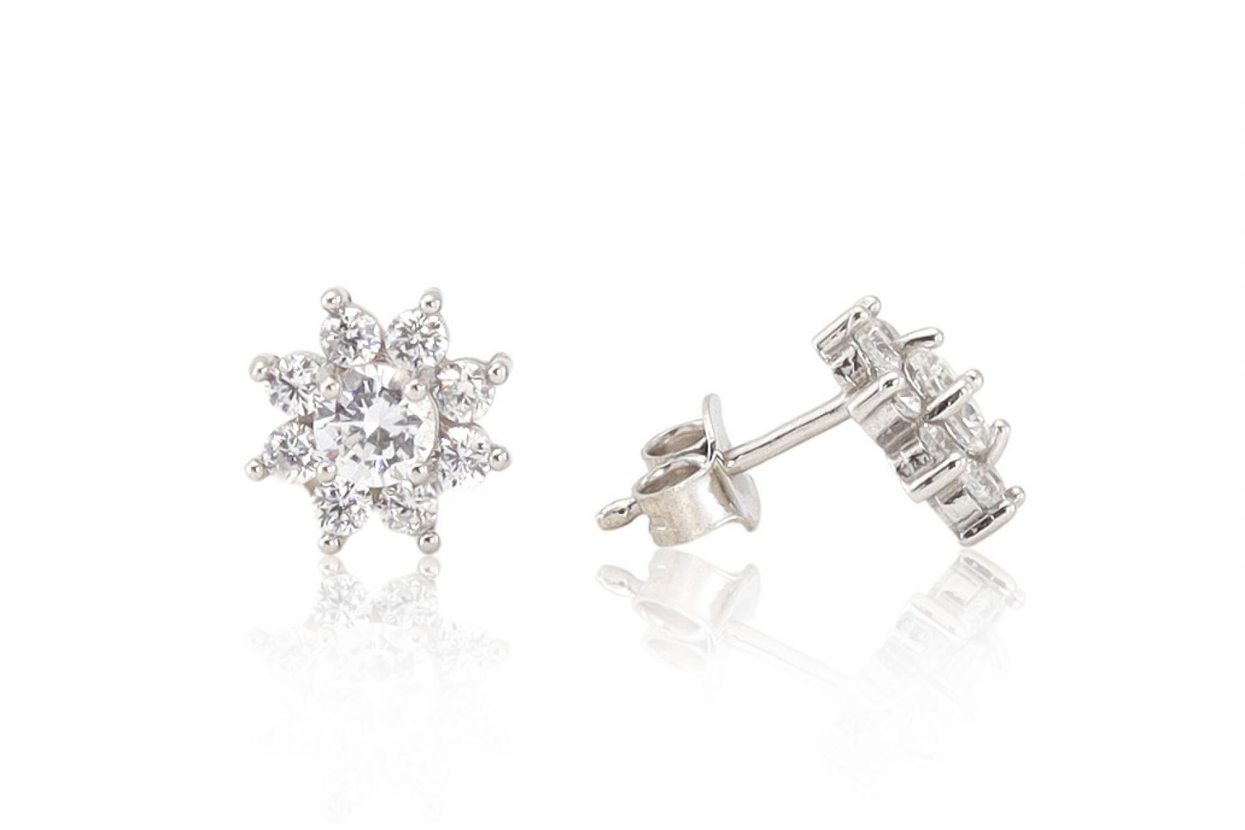 Ragyogóan szép ez a sok apró cirkónia kövecskével díszített, virágos fehér arany fülbevaló! Ajánljuk minden olyan hölgynek, leányzónak és csajszinak, aki szereti megmutatni ízlését és szikrázó egyéniségét! ;)