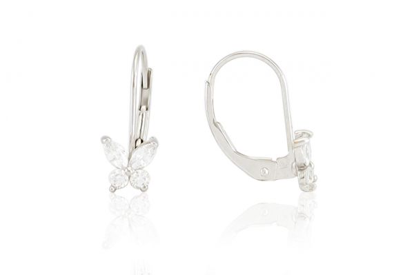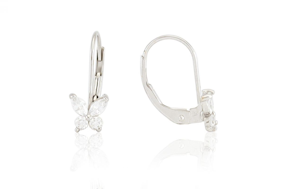 Amennyire aprócska, annyira szép és elegáns ez a szikrázó fehér cirkónia kővel díszített fehér arany pillangó mintás fülbevaló.