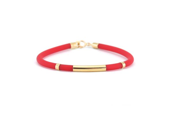 Ez a bájos, egyszerre vidám és stílusos baba karkötő piros kaucsukból és 14 karátos aranyból készült. Tökéletes választás lehet szülinapi ajándéknak, bármilyen különleges alkalom megünneplésére, megemlékezésére.