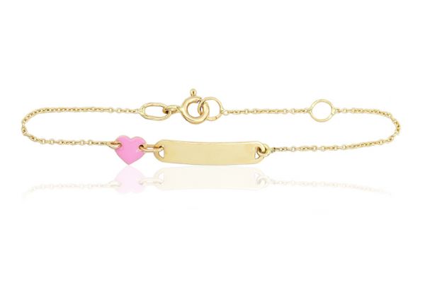 A karkötőt egy apró rózsaszín arany szív is díszíti, így téve még bájosabbá viselőjét.