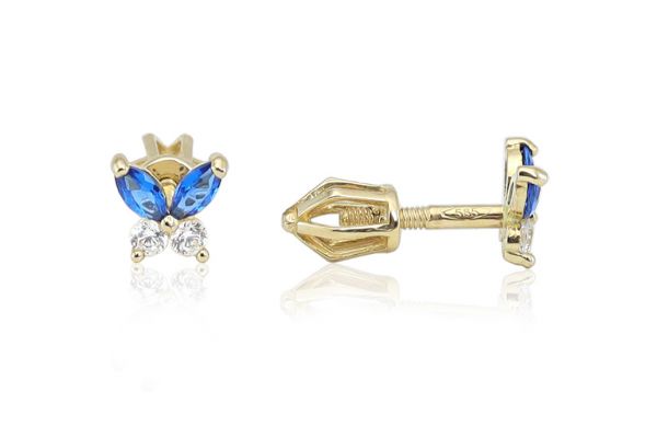 Arany baba és gyermek fülbevaló csavaros pillangó kék és fehér kövekkel