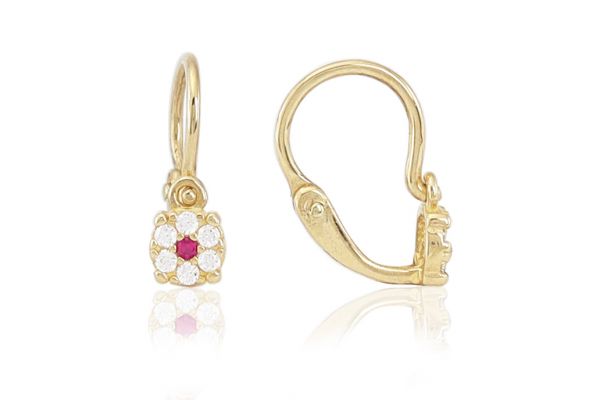 Amennyire aprócska, annyira szép és elegáns ez a szikrázó fehér és pink cirkónia kövecskékkel díszített virágos arany fülbevaló. Már újszülöttek is hordhatják!