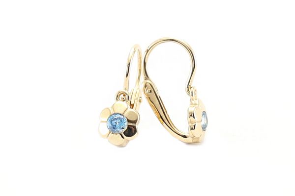 Amennyire aprócska, annyira szép és elegáns ez a szikrázó világoskék cirkónia kővel díszített arany virágos fülbevaló.