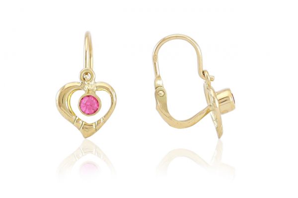 Arany gyermek fülbevaló elölkapcsos asszimmetrikus szívecske élénk rózsaszín kővel