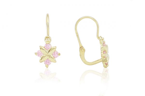 Arany gyermek fülbevaló elölkapcsos négy foglalt rózsaszín kővel