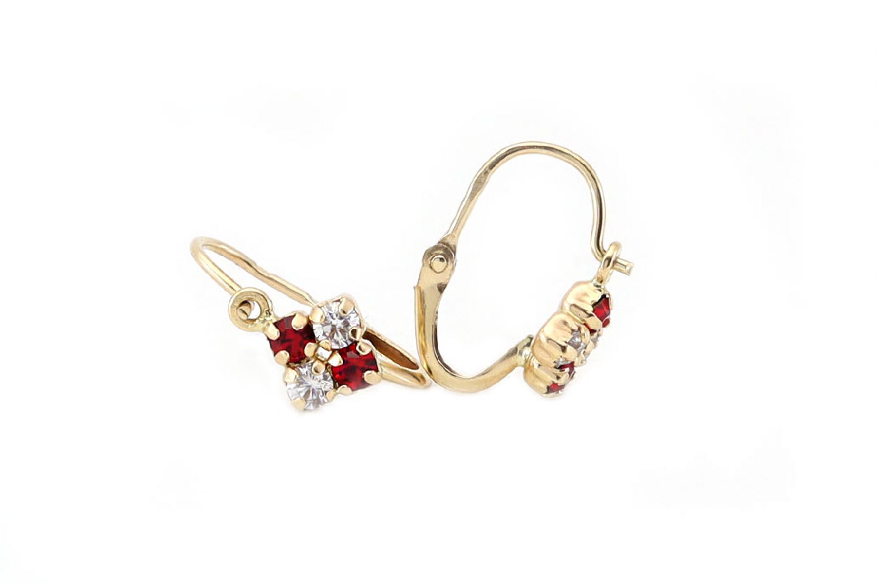 Arany gyermek fülbevaló elölkapcsos négyköves piros-fehér