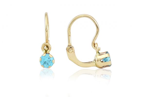 Arany gyermek fülbevaló elölkapcsos szoliter türkizkék kővel