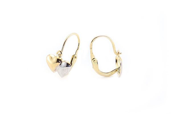 A fülbevaló aranyból készült, az ezüst színű szívecske pedig fehéraranyozott.