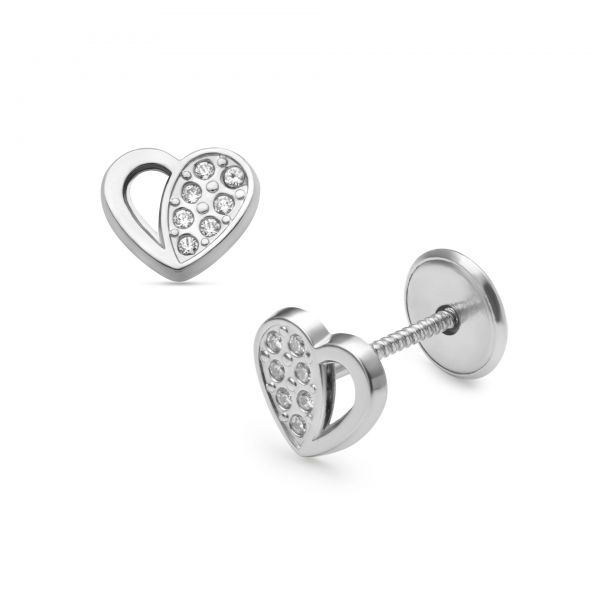 LISA fehér arany baba és gyermek fülbevaló csavaros félig köves áttört szívecske