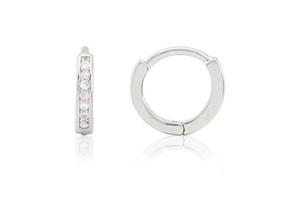 Extra halvány rózsaszín és fehér köves baba ezüst fülbevaló bepattintós keskeny karika