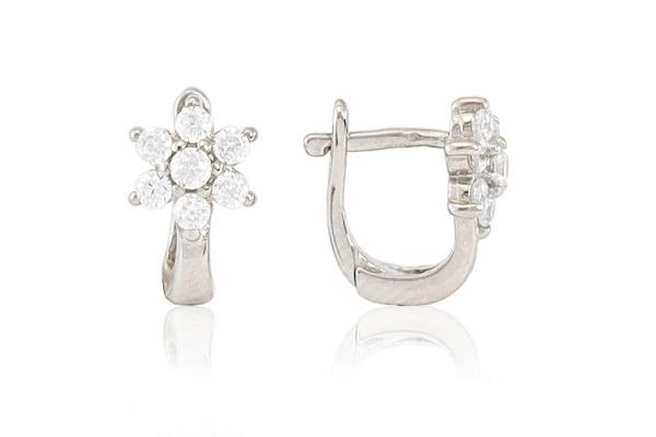 Fehér köves, franciakapcsos virágmintás ezüst baba fülbevaló