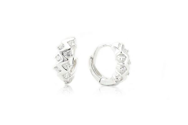 Ezüst baba fülbevaló hullámmintás karika fehér kövekkel