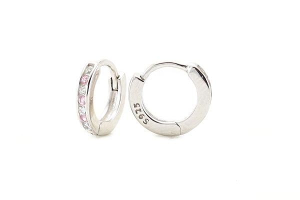 Ezüst baba fülbevaló keskeny karika rózsaszan-fehér
