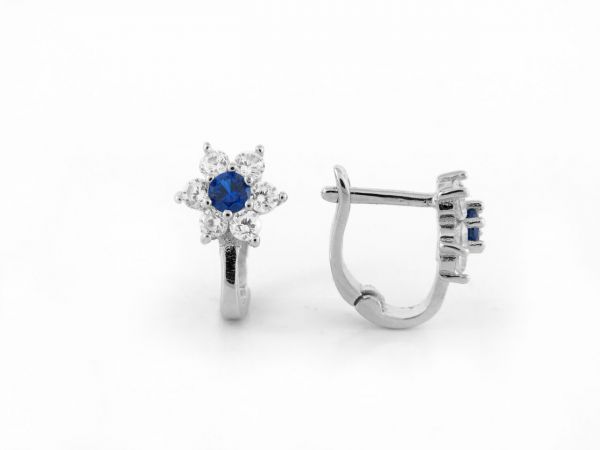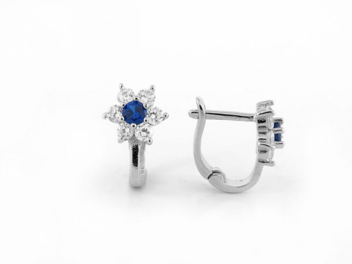 Sötétkék és fehér köves, virágmintás ezüst baba és gyermek fülbevaló