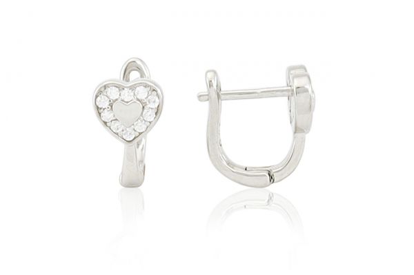 Ezüst baba és gyermek fülbevaló franciakapcsos fehér köves szívben szív ródiumbevonatos