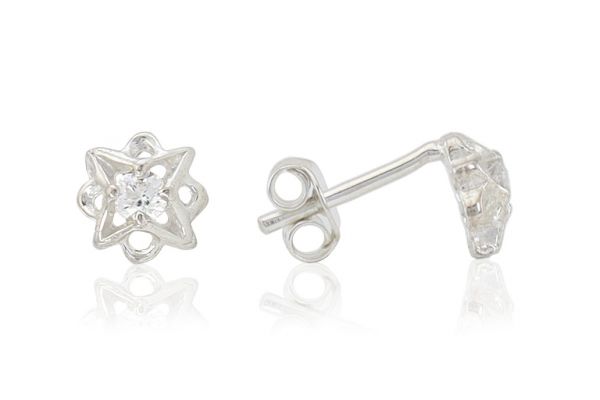 Ezüst fülbevaló bedugós áttört szirmú csillagvirág fehér kővel