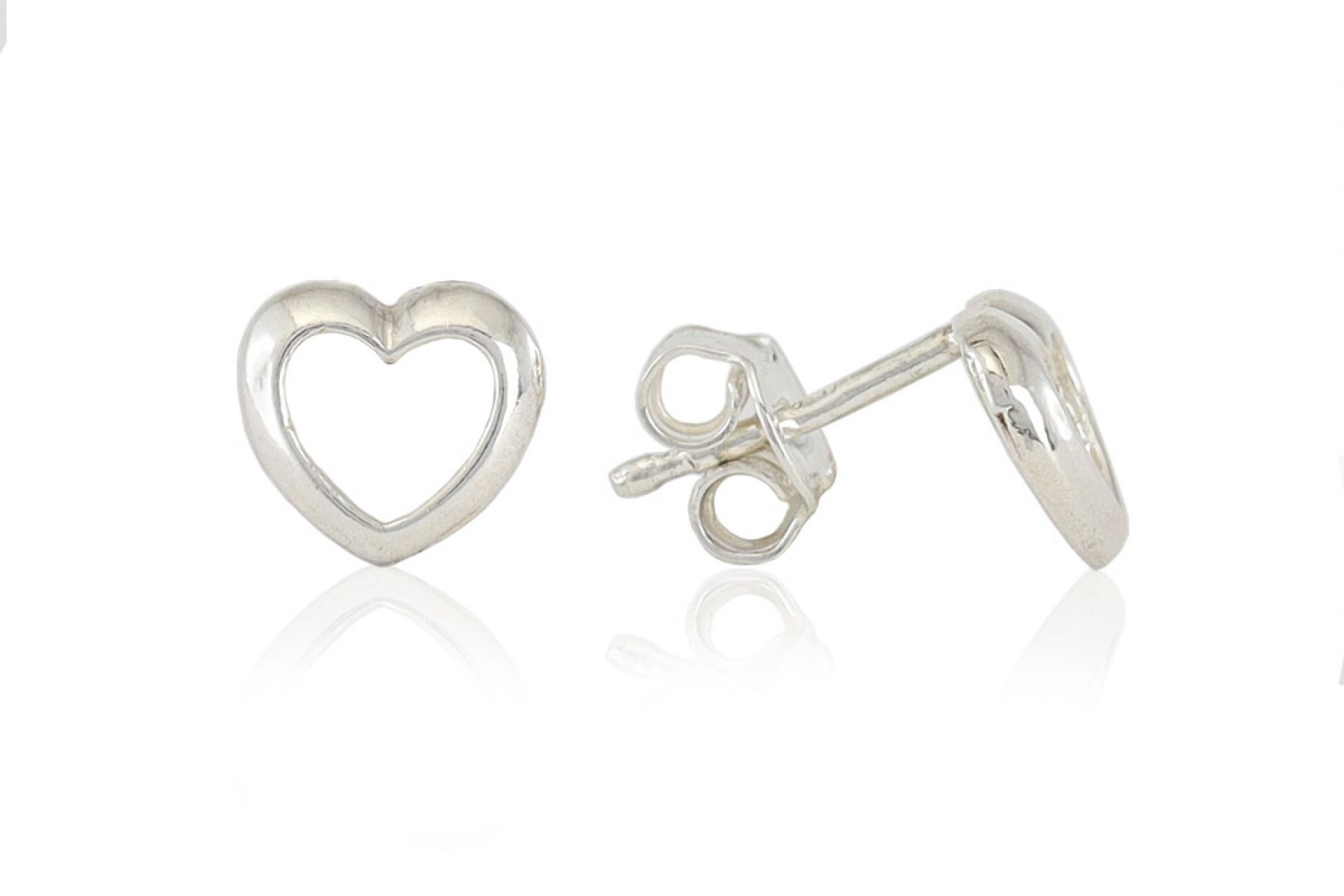 Egyszerre aranyos és elegáns ez az aprócska, áttört ezüst keret szív fülbevaló.