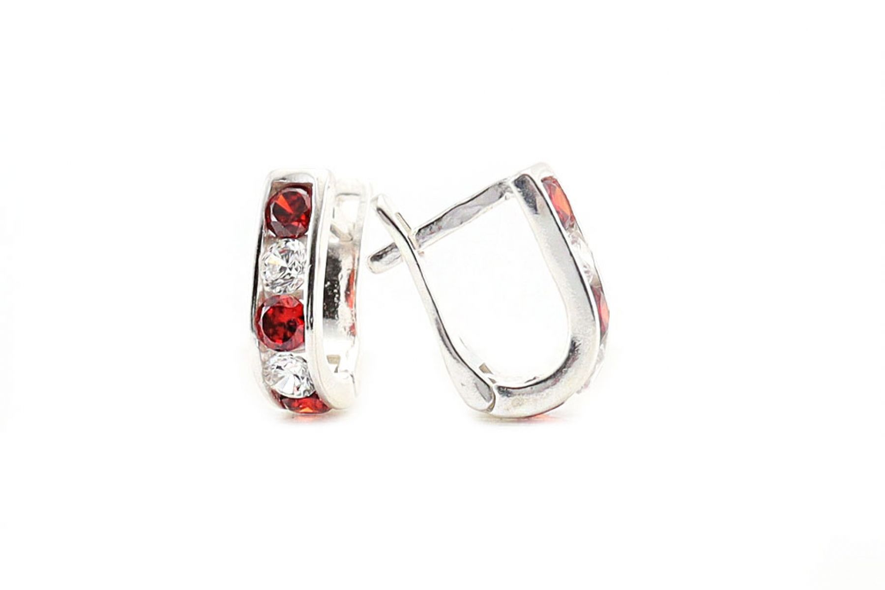 Ez az egyik legcsillogóbb fülbevalónk! A 925-ös tisztaságú ezüstből készült fülbevalóban a vörös és fehér kis cirkónia kövek gyönyörűen szikráznak a rájuk eső fényben.