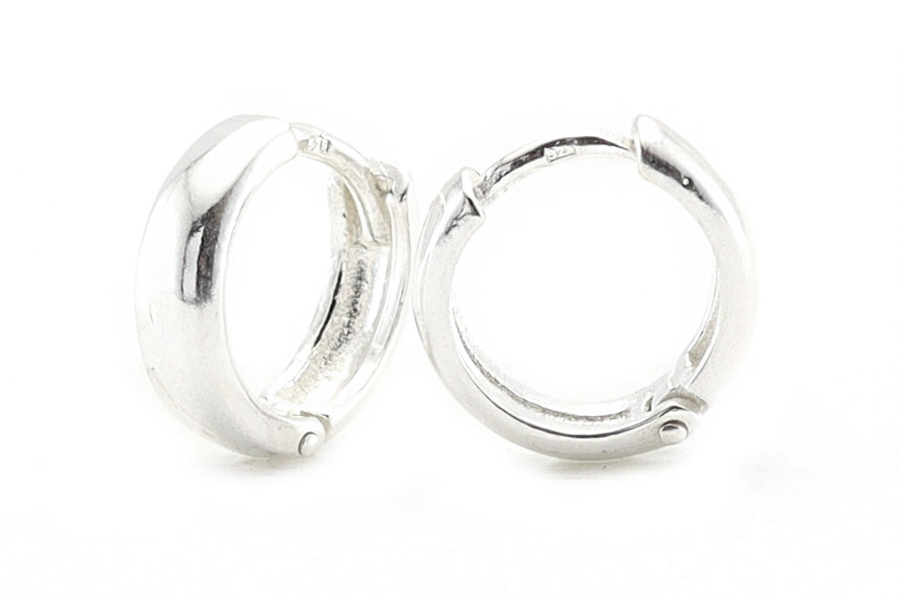Az egyszerűség jegyében készült ezüst karika fülbevaló bepattintós zárral.