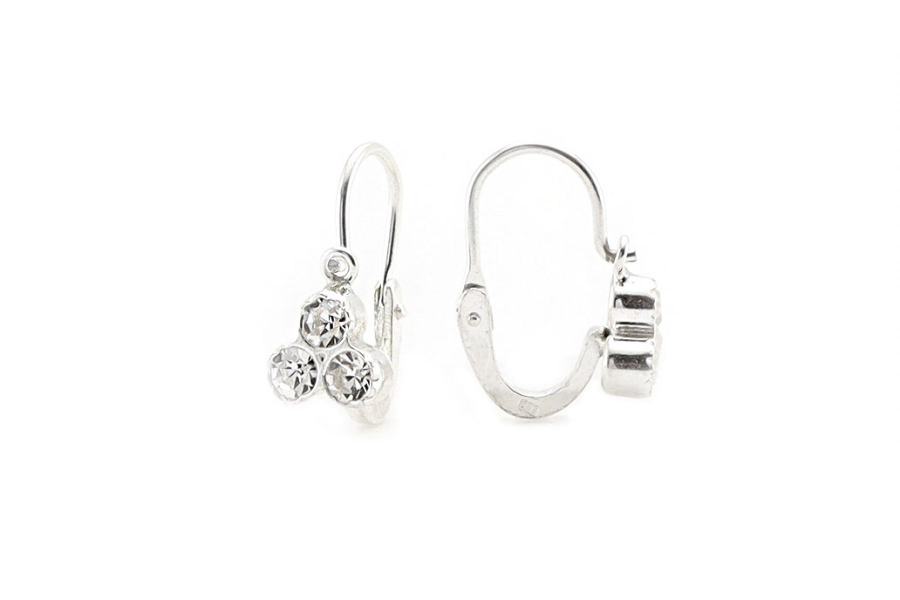 Ezüst gyermek fülbevaló elölkapcsos 3 fehér kővel
