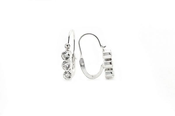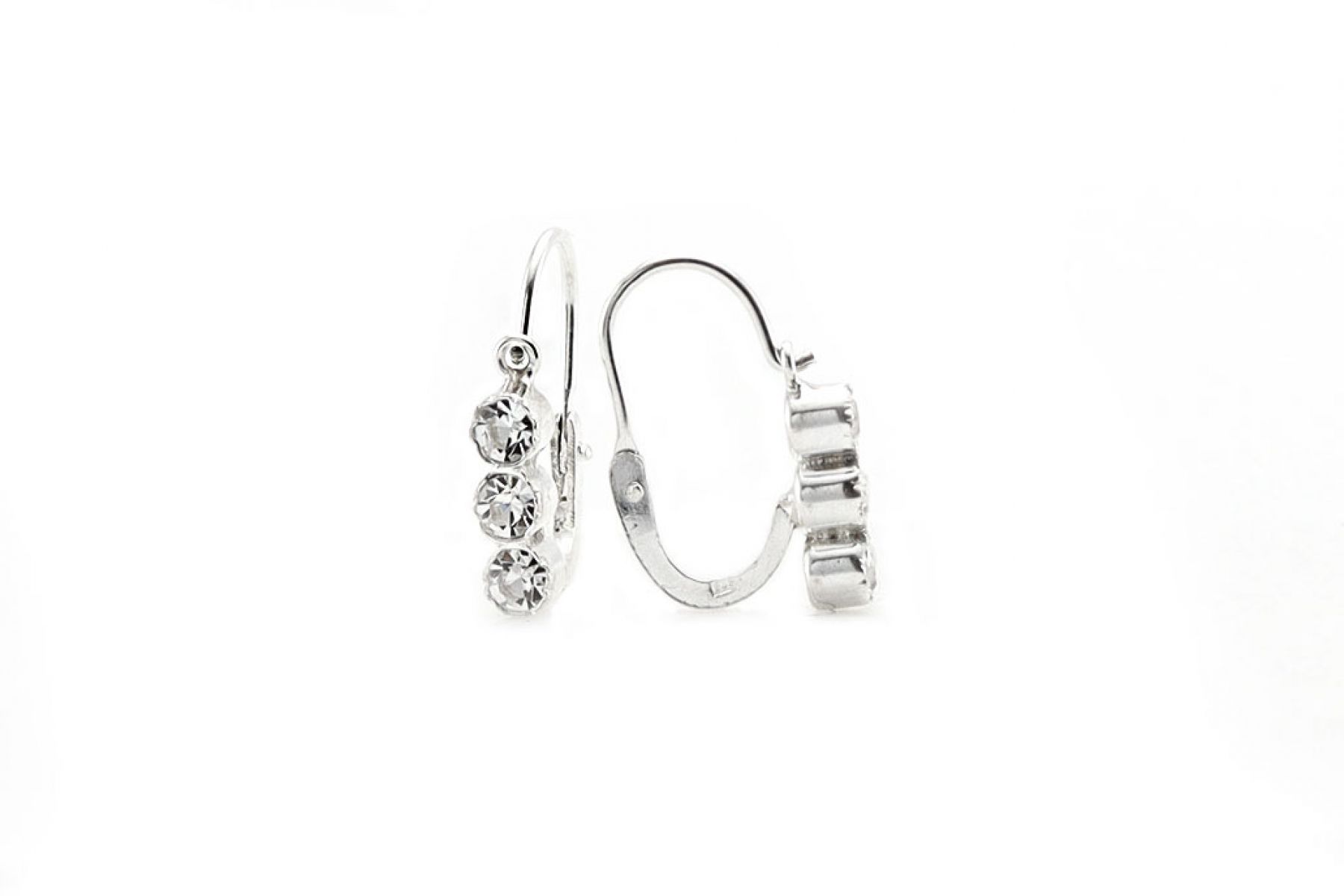 Ezüst gyermek fülbevaló elölkapcsos 3 fehér kővel