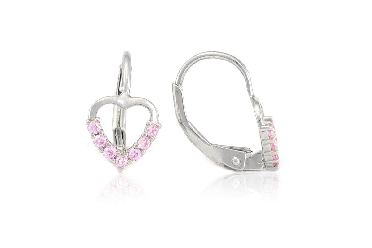 Egyik legszebb szívecskés, rózsaszín köves ezüst gyermek fülbevalónk ez az apró cirkóniákkal díszített darab.