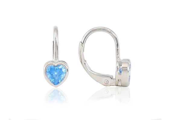 Egyik legszebb szívecskés, kék köves ezüst gyermek fülbevalónk ez a kék szív alakú kővel díszített darab.