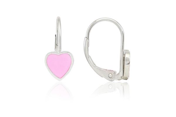 Egyik legszebb szívecskés, rózsaszín köves ezüst gyermek fülbevalónk ez a szív alakú kővel díszített darab.