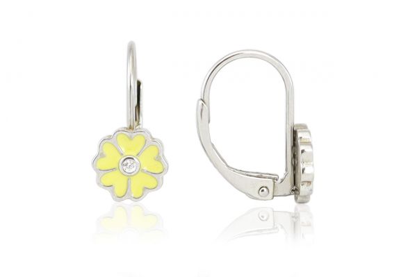 Ezüst gyermek fülbevaló patentzáras festett virág pici kővel ródiumbevonatos