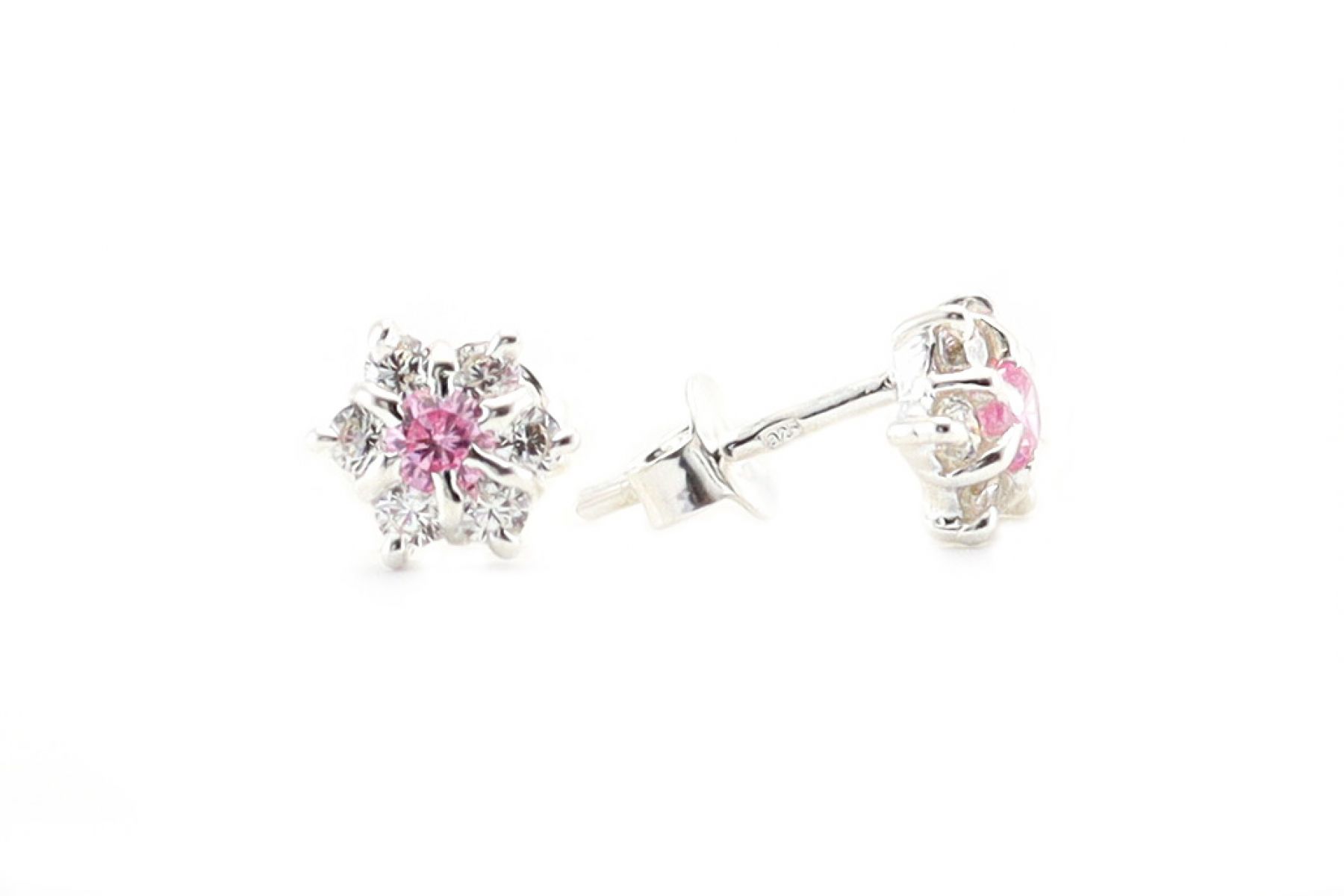 Halványrózsaszín és fehér köves virágos ezüst gyermek fülbevaló