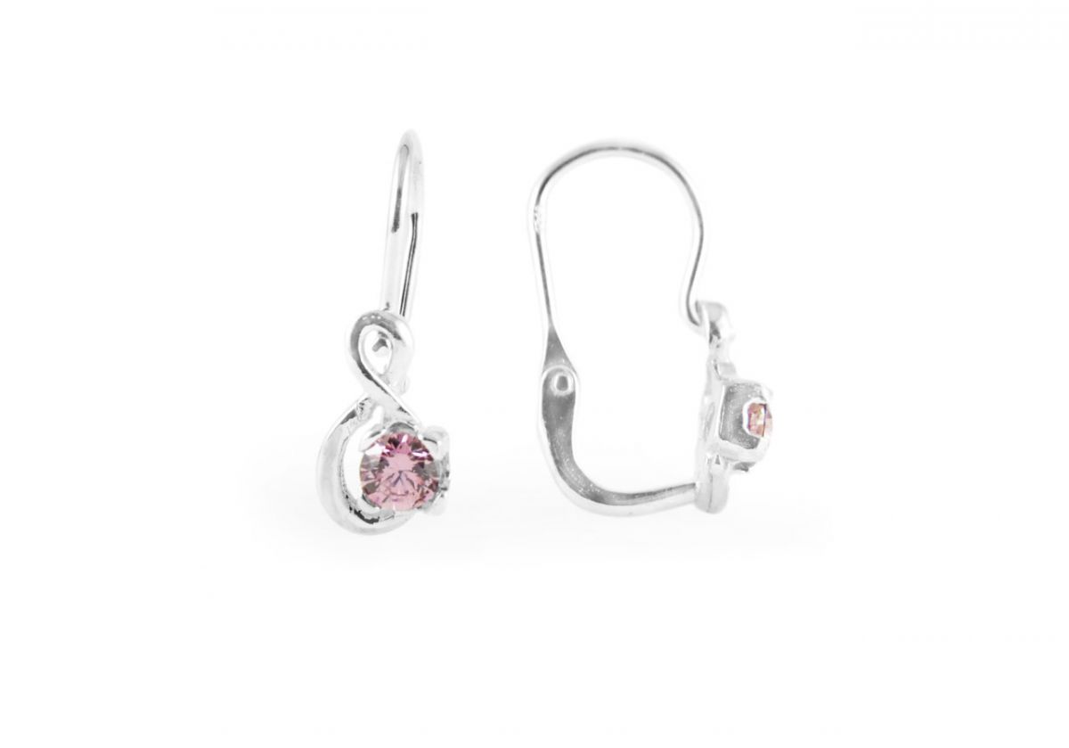 Igazán aranyos ez az apró, hurokmintás, mályvaszín cirkónia köves kis ezüst baba fülbevaló. Mosolygós, vidám, kíváncsi kislányoknak ajánljuk! :)