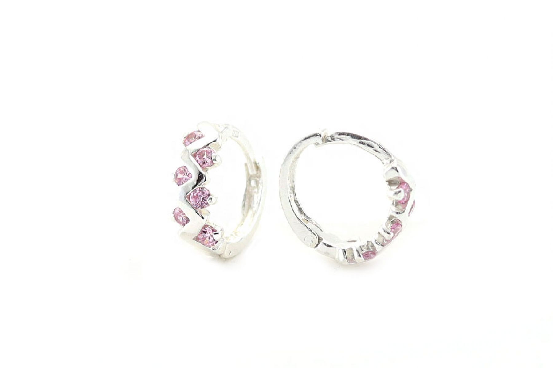 Ez talán az egyik legelegánsabb ezüst kislány fülbevalónk! Az aprócska rózsaszín cirkónia kövek gyönyörűen szikráznak a rájuk eső fényben, ám a visszafogott ezüst mégis könnyedséget és aranyos bájt kölcsönöz a kislánynak.